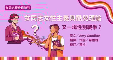 本週是 #女同志現身週,於是我們選擇翻譯這篇文章,讓台灣的讀者更加認識女同志女性主義(lesbian feminism)。值得一提的是,這篇文章來自最早的女同志網站之一「lesbian.org」之創辦人艾咪·古德洛(Amy Goodloe)——她發表於1994年的學術報告。那是一個西方性別理論劇烈動盪的年代。作為譯者,在重新審視這篇論辯時,我認為有必要為台灣讀者補充一段「時空錯置」的背景與近年學界的最新反思。