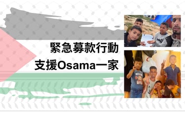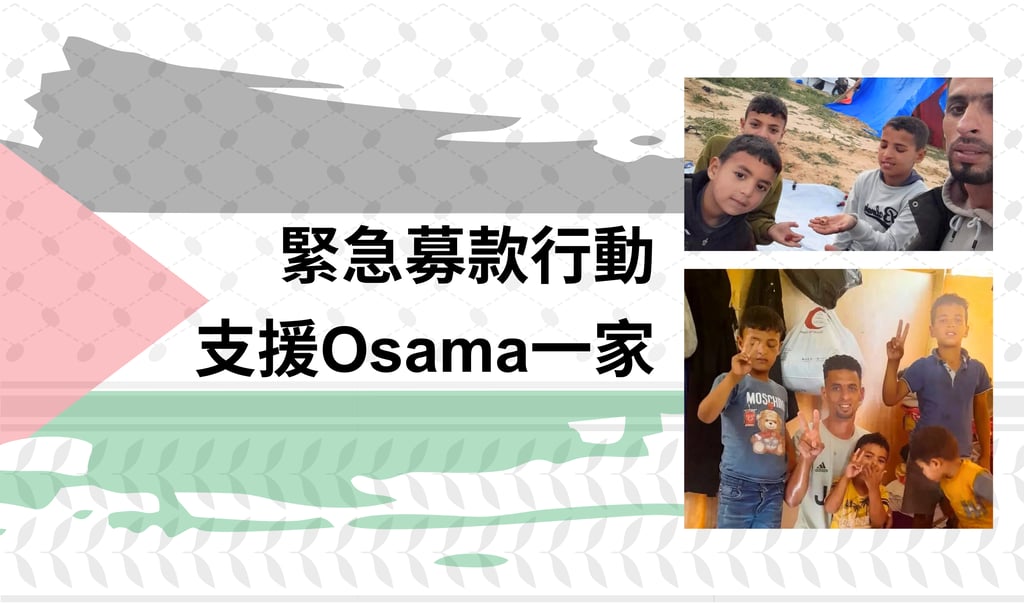 支援加薩的華語社群 (如 @tofu_stand、@feministchina_jp、@sinoqueer_se、@vachina2021 等團體) 已透過巴勒斯坦當地人的夥伴驗證30多戶急需支援的加薩家庭,其中為 Osama 一家。Osama 是一名33歲的父親,正在綜合糧食安全等級分類 (Integrated Food Security Phase) 之第五級飢荒 (最嚴重的災難等級) 的情況下張羅他、母親 (68歲)、妻子和4位男孩七口家庭的覓食養活。Osama 從10月7日始就已長期積極投入社群募款和資源分配的工作,將國外資源分配給身邊顛沛流離的加薩鄰居們,但現在加薩的物資已漲到一個不可思議的程度,Osama 已自顧不暇,只能費盡心機地想辦法讓自己的家人活過飢餓、轟炸、槍林彈雨的種族滅絕惡夢。